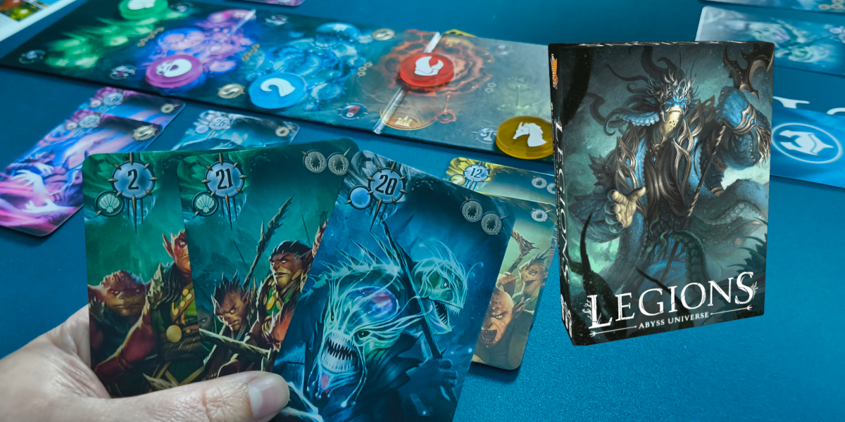 Legions wordt geleverd met een speelbord dat in drie delen kan worden geplooid. Het bord is gemaakt van stevig karton en voorzien van artwork dat perfect aansluit bij het Abyss-universum. Er zijn vijf meerderheidsfiches, telkens in de kleur van het bijhorende gebied, uitgevoerd in stevig, doorschijnend plastic.