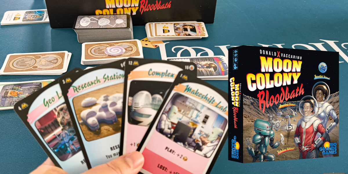 Moon Colony Bloodbath is een heel tof spel dat verrassend vlot speelt. Doordat iedereen gelijktijdig speelt en telkens dezelfde kaart uitvoert, zit er een sterke flow in het spelverloop. Je bent voortdurend bezig, zonder lange wachttijden, wat het tempo hoog en aangenaam houdt.