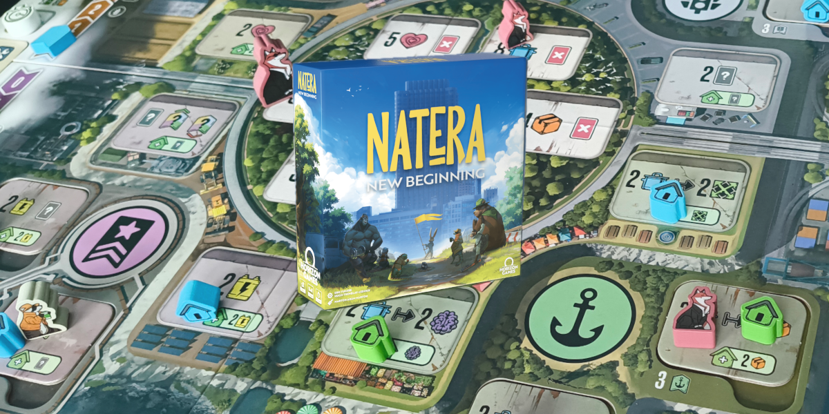 Natera: New Beginning is een thematisch eurospel dat groeit en verandert afhankelijk van het aantal spelers aan tafel. Met twee spelers voelt het eerder als een persoonlijke puzzel waarbij iedereen rustig zijn eigen engine opbouwt en zelden in elkaars weg staat. Zodra je met drie of vier speelt, komt het spel echter veel sterker tot leven. Locaties worden schaarser, geplande acties worden weggekaapt en de concurrentie op de districtssporen wordt veel intenser. De interactie stijgt duidelijk mee met het spelersaantal, wat het spel dynamischer en spannender maakt.