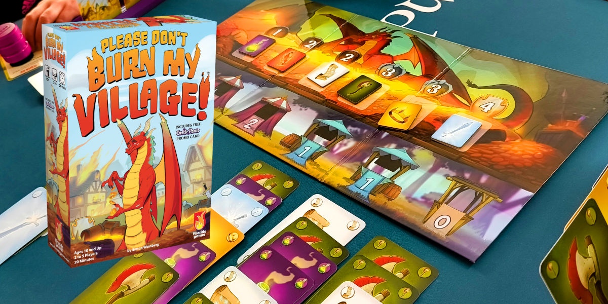 Please Don’t Burn My Village is een spel met eenvoudige spelregels dat toch verrassend veel interactie en spanning met zich meebrengt. Doorheen het spel gaan de waardes van de schatten voortdurend heen en weer, waardoor het belangrijk is om niet alleen met je eigen plannen bezig te zijn, maar ook je tegenstanders goed in het oog te houden.