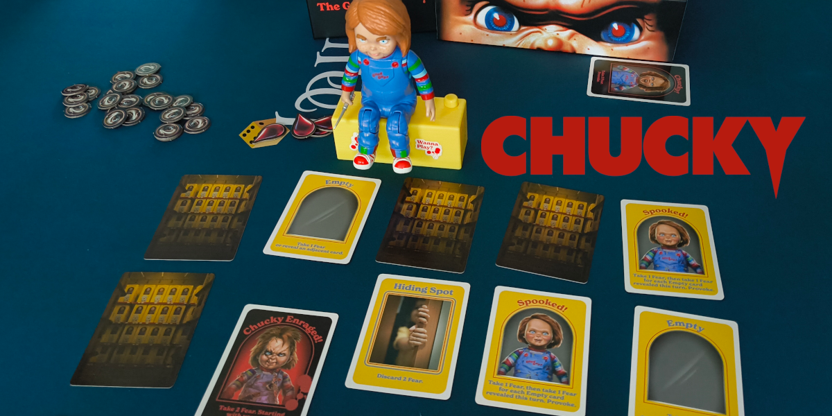 Chucky The Game is een leuk coöperatief spel waarin spelers samen proberen Chucky te vinden en te verslaan. Het spel draait om het verzamelen van angstfiches, het slim omdraaien van kaarten en het zorgvuldig inzetten van acties om de pop te provoceren op het juiste moment. Het is niet eenvoudig om Chucky te verslaan: een beetje geluk is vaak nodig.