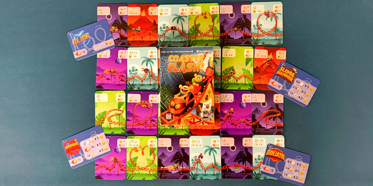 Coaster Clash is een leuk kaartspel waarin je echt het gevoel krijgt dat je samen een pretpark vol rollercoasters aan het bouwen bent. De thematische insteek is sterk uitgewerkt en de kaarten brengen dat pretparkgevoel goed tot leven.