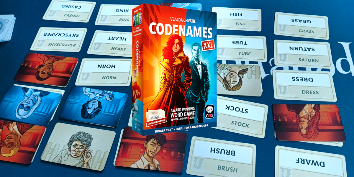 Codenames XXL is, zoals de titel al aangeeft, de extra grote versie van het bekende woordspel Codenames. Zowel de kaarten als de tegels zijn aanzienlijk groter dan in de standaardeditie, waardoor alles veel beter leesbaar is, zelfs bij grotere groepen. De woorden zijn gedrukt in een groter lettertype en blijven ook vanop afstand duidelijk zichtbaar.