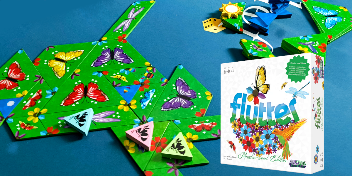 Flutter is een leuk en toegankelijk puzzellegspel dat we graag op tafel leggen. Het spel draait om de juiste keuzes te maken op het juiste moment. De timing van het nemen van een tegel, het doordacht plaatsen ervan, het beheren van je blaadjes én het in de gaten houden van je tegenstanders spelen allemaal een belangrijke rol.