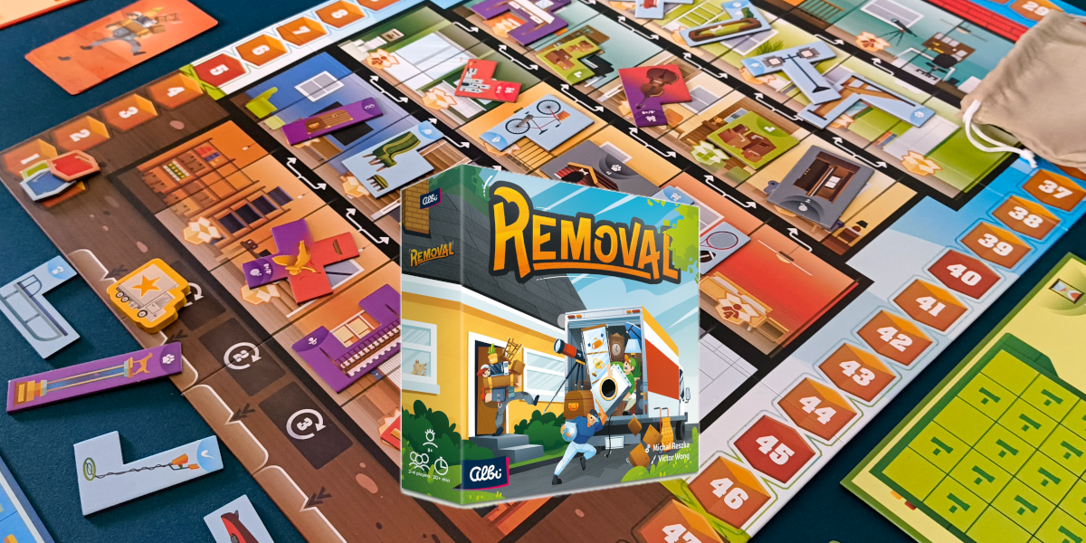 Removal komt met een levendig, dubbelzijdig speelbord dat een huis voorstelt.